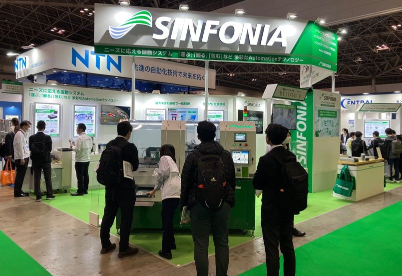 今回は、「ニーズに応える振動システム~[運ぶ][観る][包む]など多彩なAutomationテクノロジー~」をテーマに、 国内最大級サイズのボウルを搭載し、高効率な部品の整列搬送を可能にするパーツフィーダや、新たなシステムの取り組みとしてワークの整列搬送に加え、検査・梱包まで行う自動検査梱包機など、様々な製品を展示しました。